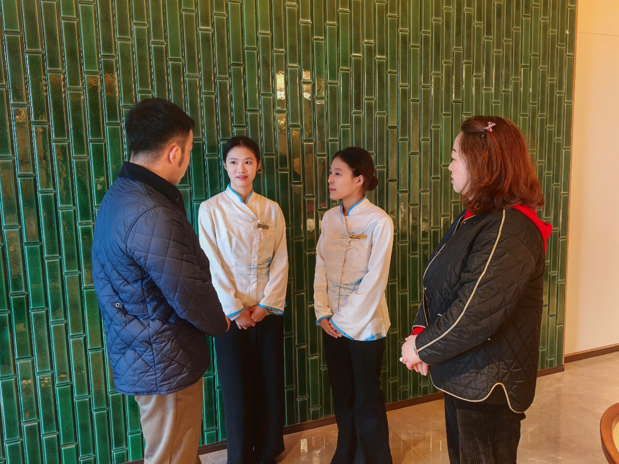 为切实了解学生跟岗实习情况,深化产教融合,12月30日,文化旅游学院旅游管理教研室主任王鹏、专任教师秦彩凤、学团办周亚兰老师一行前往广阳岛会议中心,看望在此进行跟岗实习的学生,并与酒店人力资源管理部门进行了深入交流。