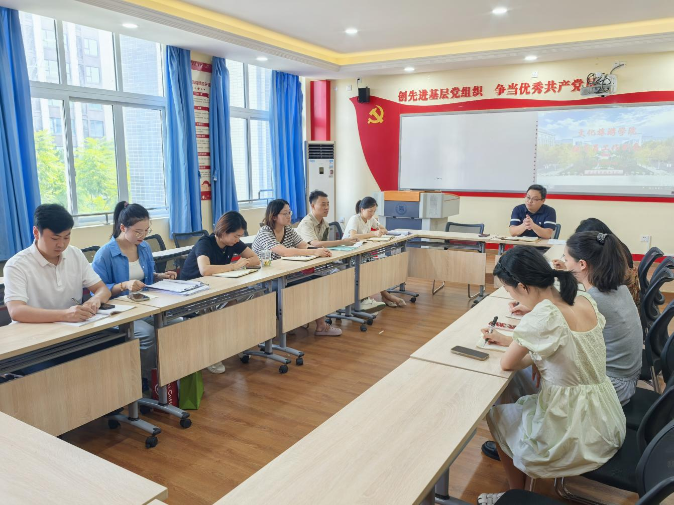 9月2日下午,文化旅游学院在2301会议室召开新学期学生工作例会。学院党总支副书记、副院长马建林主持会议,党总支书记莫灼宇、学团办副主任罗映芳及全体专兼职辅导员参会。