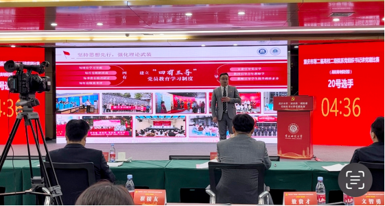 为深入学习贯彻党的二十届三中全会精神,全面学习贯彻习近平总书记视察重庆重要讲话重要指示精神,认真学习贯彻全国教育大会精神,推动党建引领事业高质量发展,集中呈现激发高校党组织书记创造性张力“三项机制”成果,全面推进教育强市和现代化新重庆建设任务落实,11月22日,重庆市举办第二届高校院系党组织书记讲党建比赛。党总支书记代表我校参赛,荣获三等奖。