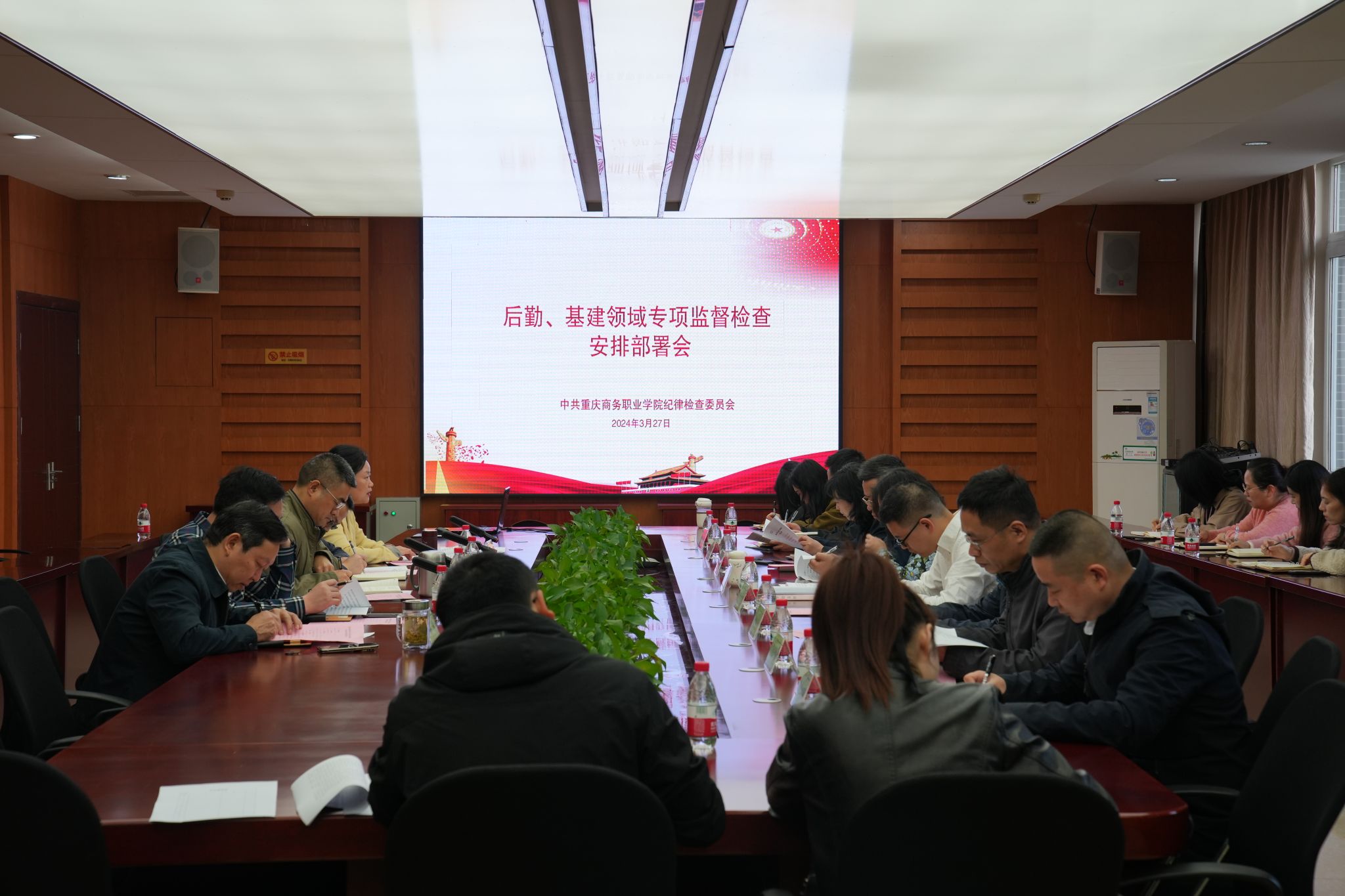 为深入贯彻二十届中央纪委三次全会和六届市纪委三次全会精神,落实有关工作部署,3月27日上午,学校在第三会议室召开2024年后勤、基建重点领域专项监督检查工作安排部署会,学校党委副书记、院长江涛主持会议并讲话,校领导丁谦、管军、杨梅、舒鸿,党政办、纪检监察室、财务处、学生工作部、后勤处、审计处、南岸校区综合办、实习实训中心负责人及重点岗位人员参加会议。