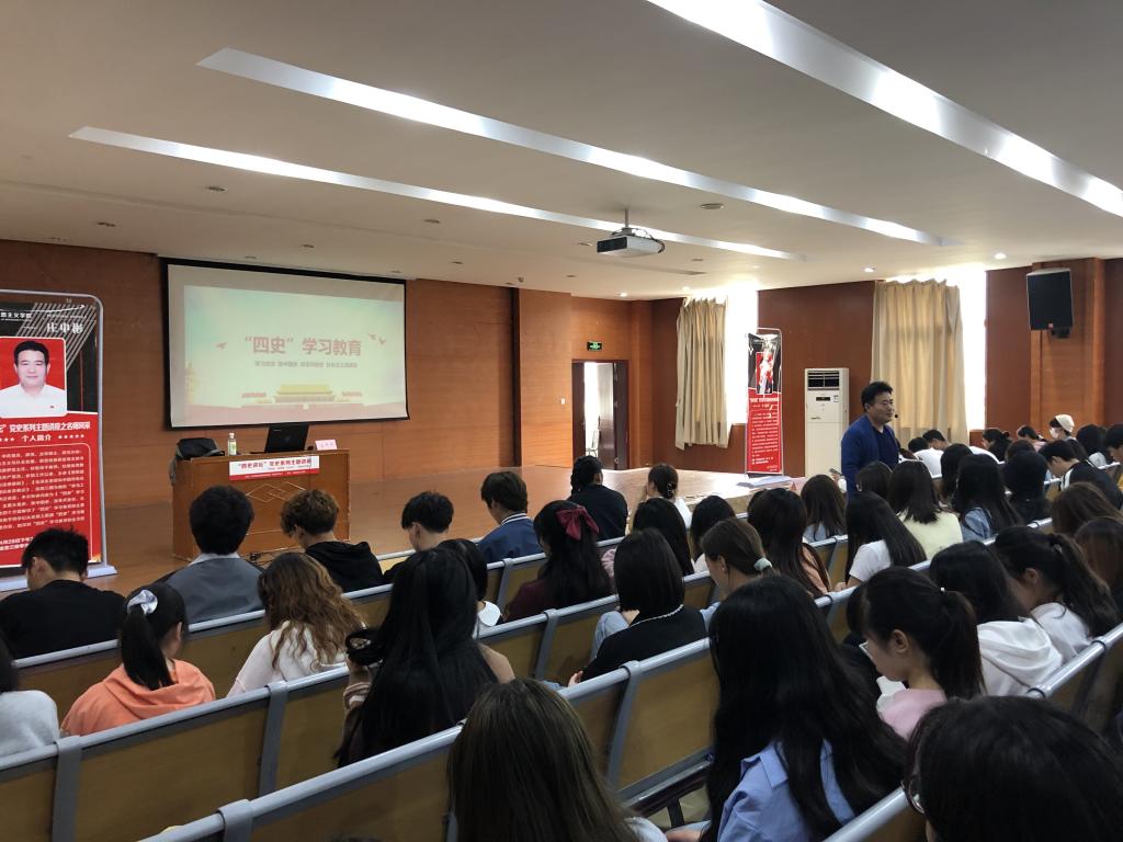 庄申彬以《“四史”学习教育》为题面向学生宣讲,以生动的语言从党史、新中国史、改革开放史、社会主义史四个方面解读了“四史”学习教育的主要内容,讲座站位高远,鞭辟入理,帮助学生从宏观上把握“四史”学习教育的主要内容,加深对“四史”学习教育的全方位认识。