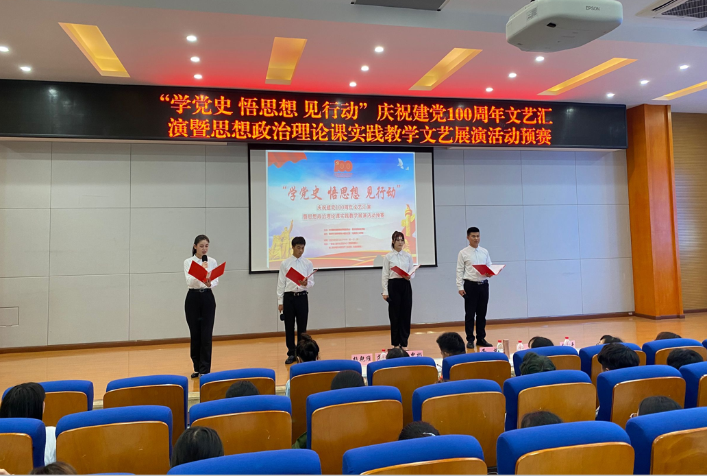 【文/图 马克思主义学院】5月12日,由马克思主义学院承办的“学党史 悟思想—争做时代新人”喜迎建党100周年思政课实践教学文艺展演预赛在学生活动中心和学术报告厅同时开赛并圆满落幕。本次展演分歌舞类、表演类和讲述类三种形式,参演节目120余个、参赛班级77个,共计1000余名学生参与。