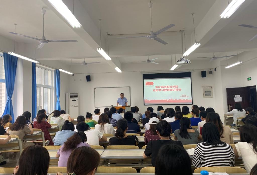 宣讲结束后,财经管理学院党总支书记号召全体教职工以党史学习教育为契机,进一步提高政治站位,不断提高政治判断力、政治领悟力、政治执行力,增强“四个意识”、坚定“四个自信”、做到“两个维护”;进一步强化工作举措,充分利用重庆红色资源优势,充分发挥干部示范引领作用,把党史学习教育与传承红色基因和优良办学传统结合起来,与开展“我为师生办实事”实践活动和推动学校改革发展结合起来,切实解决好广大师生的困难事、烦心事,解决好学校改革发展中的重点难点问题,群策群力奋力创建“双高”院校,谱写“为党育人、为国育才”新篇章,以优异成绩迎接中国共产党成立100周年。