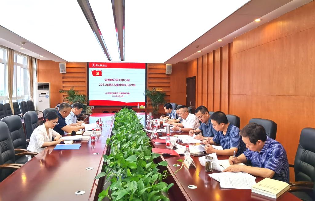 【文/图 党委宣传部】6月8日,学校党委开展理论学习中心组学习会暨党史学习教育专题读书班集中学习研讨会,集中学习传达习近平总书记近期系列重要讲话精神、重要理论文章,市委五届十次全会精神、习近平总书记关于师德师风的重要论述摘编、《习近平总书记教育重要论述讲义》、《习近平新时代中国特色社会主义思想学习问答》等内容。党委书记谭勇主持会议并提出具体要求。在家党委委员、党务部门负责人参加学习会。