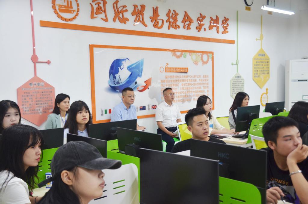 党委书记谭勇、副院长贾小波在国际贸易综合实训室听课