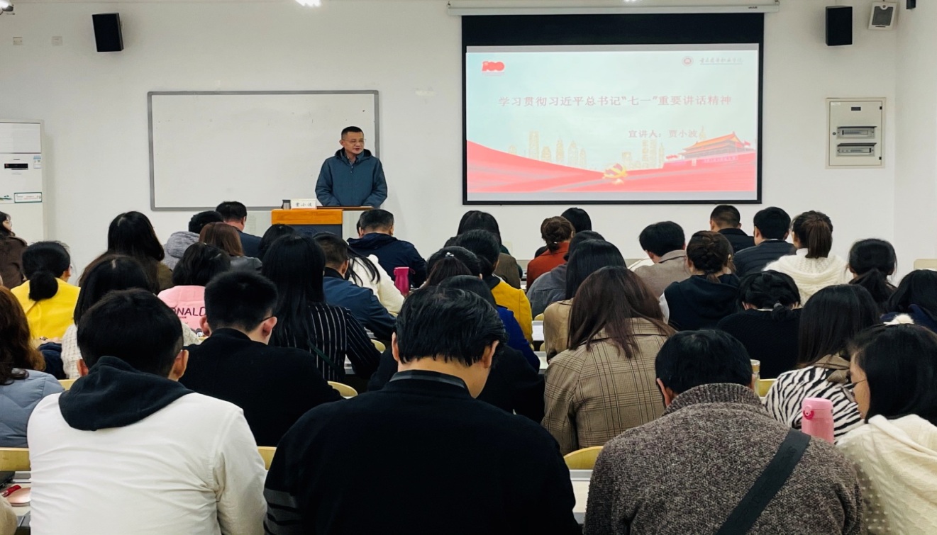 贾小波紧紧围绕“深刻认识、准确把握习近平总书记‘七一’重要讲话的重大意义”“深入学习领会习近平总书记‘七一’重要讲话提出的一系列新思想、新观点、新要求”“深学笃用习近平总书记‘七一’重要讲话精神,在新的征程上奋力开创更加美好的未来”等三个方面内容,深刻阐释了习近平总书记“七一”重要讲话精神的重大意义和精神实质,全面准确把握习近平新时代中国特色社会主义思想,汇聚起推动学校高质量发展的强大动力。