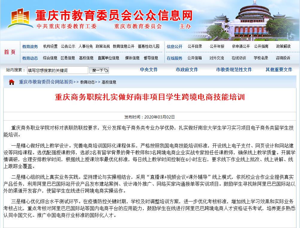 媒体看商院:重庆商务职院扎实做好南非项目学生跨境电商技能培训