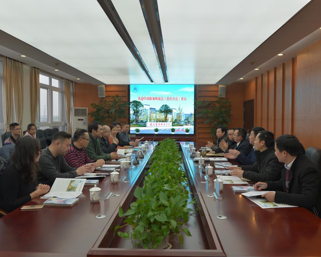 1月25日,中国新加坡商会重庆分会会长吴适存、副会长陈培芝等一行来校交流。党委书记谭勇,院长冉光学,副院长丁谦、张荣、舒鸿以及对外合作交流办负责人参加交流会。谭勇代表学校对来宾的到来表示欢迎。他说,学校紧紧围绕统筹推进“五位一体”总体布局和协调推进“四个全面”战略布局,坚持新发展理念,把握经济社会要求和职业教育发展新趋势,确立应用型商务类高校办学目标和“三步走”发展路径。希望以中新(重庆)战略性互...