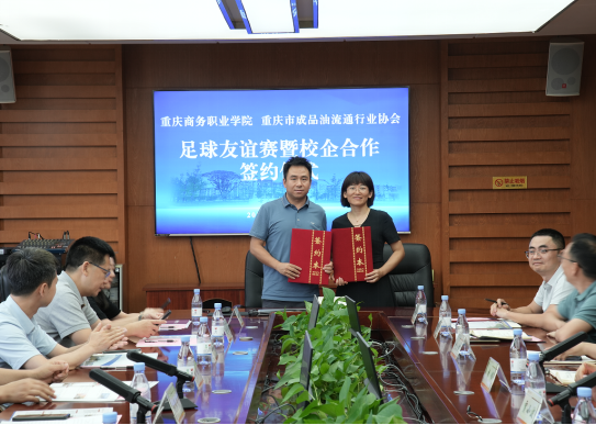 会上,学校与重庆市成品油流通行业协会,现代商贸学院与重庆集信嘉德实业(集团)有限公司和重庆油乐园科技有限公司分别签署合作协议。