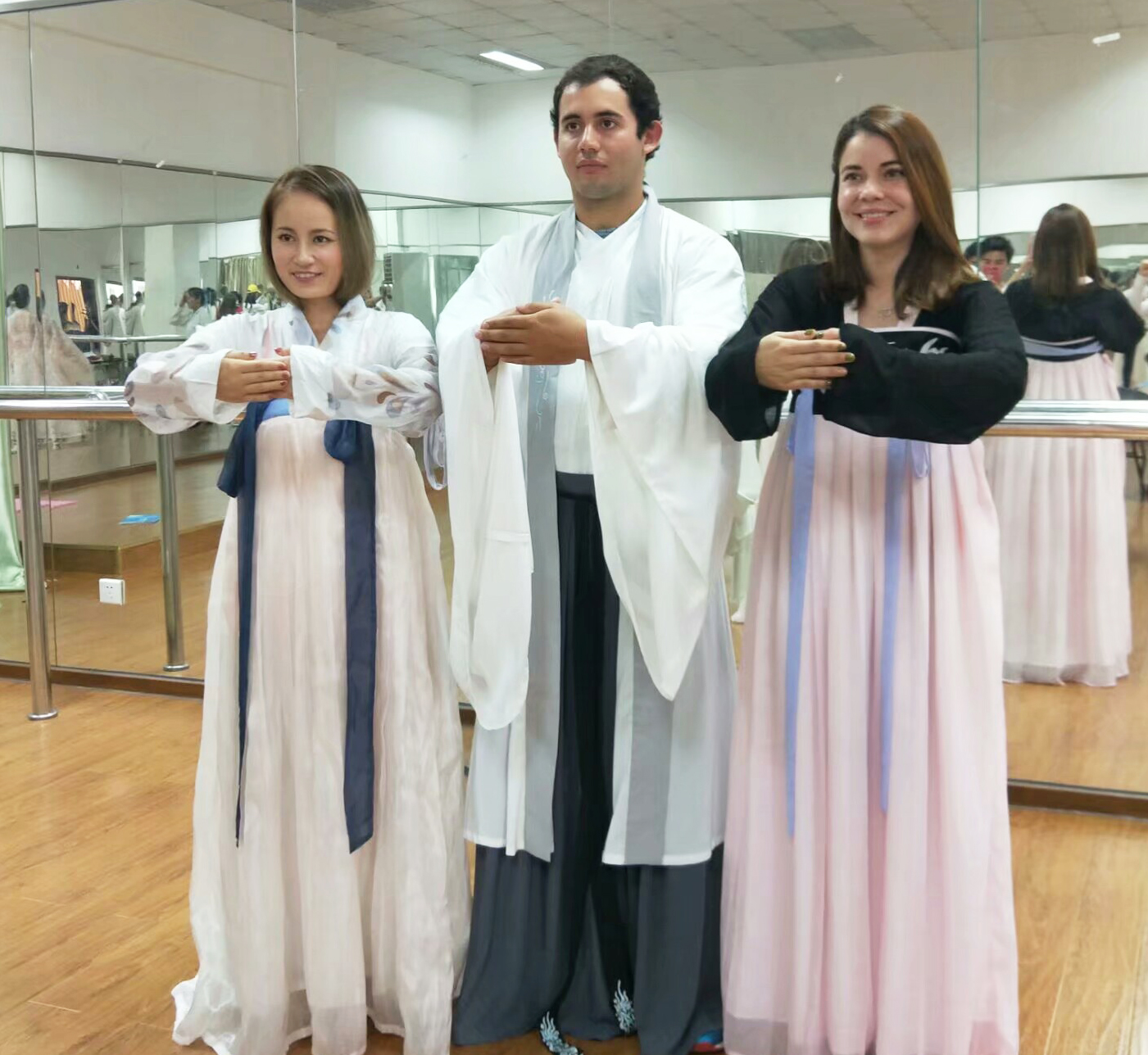 师生代表团体验了一系列具有中国特色的交流活动,全方位地感受了中华传统文化和商务文化的精髓。他们体验了中国汉服文化、礼乐文化、戏曲文化等活动项目;走进电商工作坊,了解了中国电商发展历程和前景;走进课堂,感受了商院的课堂文化;走进餐饮实训楼,体验了特色中餐、面点制作;来到操场等活动场所,感受了校园丰富的业余生活。