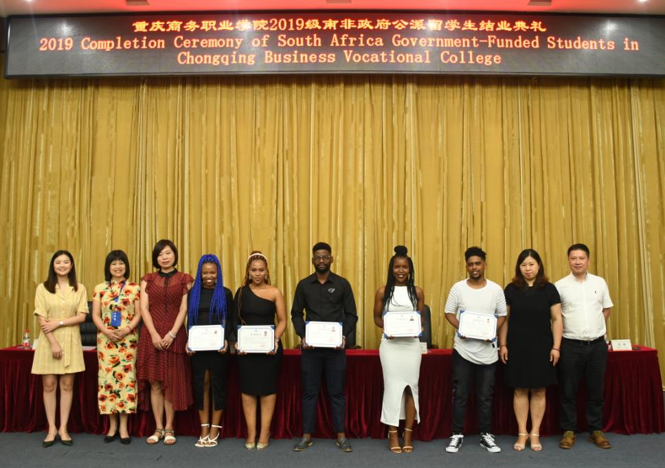 2020年7月27日,学校举行2019级南非政府公派留学生结业典礼,阿里巴巴国际站重庆业务负责人刘倩,学校对外合作交流办,教务处,商贸管理系相关负责人及留学生辅导员参加典礼,商贸管理系党总支书记廖彩霞主持。