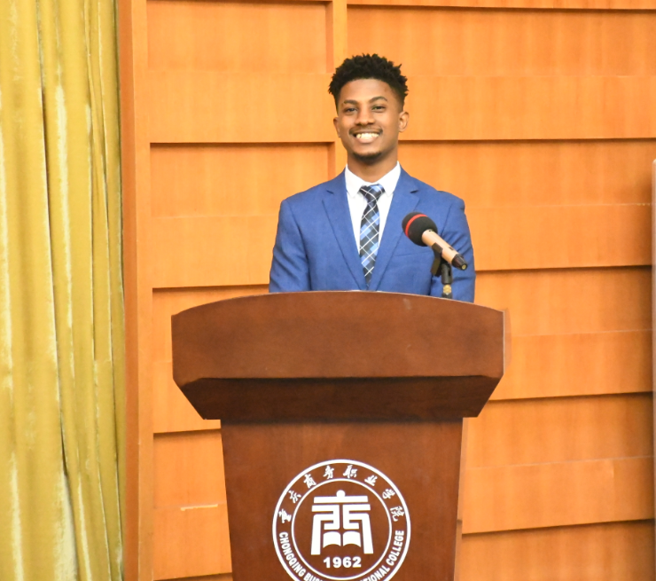 南非学生代表Hendricks发言,表示感谢学校给予的教导和帮助,将铭记恩师教诲,用自己在中国所学为南非发展贡献力量,愿意成为中南友谊的使者,共搭中南交流合作之桥梁。
