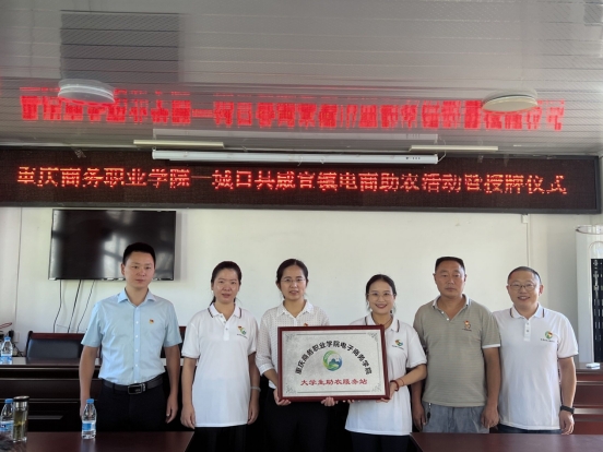 实践团队首先来到咸宜镇咸宜村村委会,与城口县咸宜镇党委专职副书记胡尚勇和团市委派驻咸宜村驻村第一书记刘丽霞等人展开交流,就当地农产品特色和产业发展现状深入研讨,并就共建“党员志愿服务站”和“大学生助农服务站”达成共识,随后进行了服务站授牌仪式,为持续开展帮扶提供平台保障。
