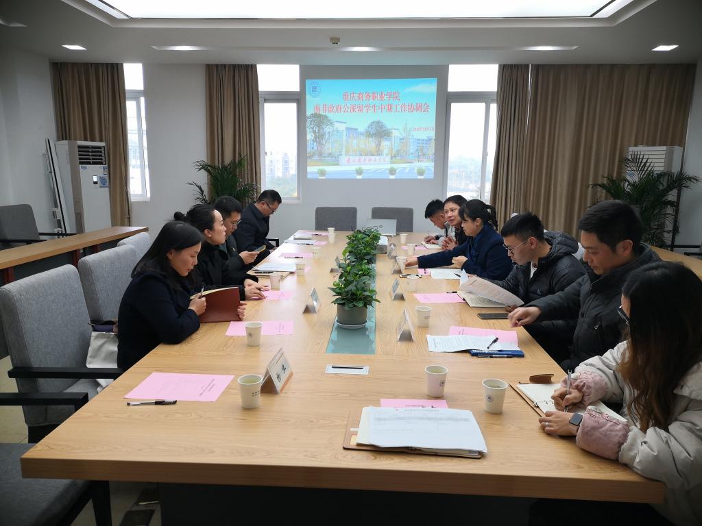 12月5日下午,南非政府公派留学生项目中期工作协调会在第五会议室召开,对外合作交流办公室、学工部、教务处、后勤与国资处、保卫处、商贸管理系、物业等相关人员参加会议。
