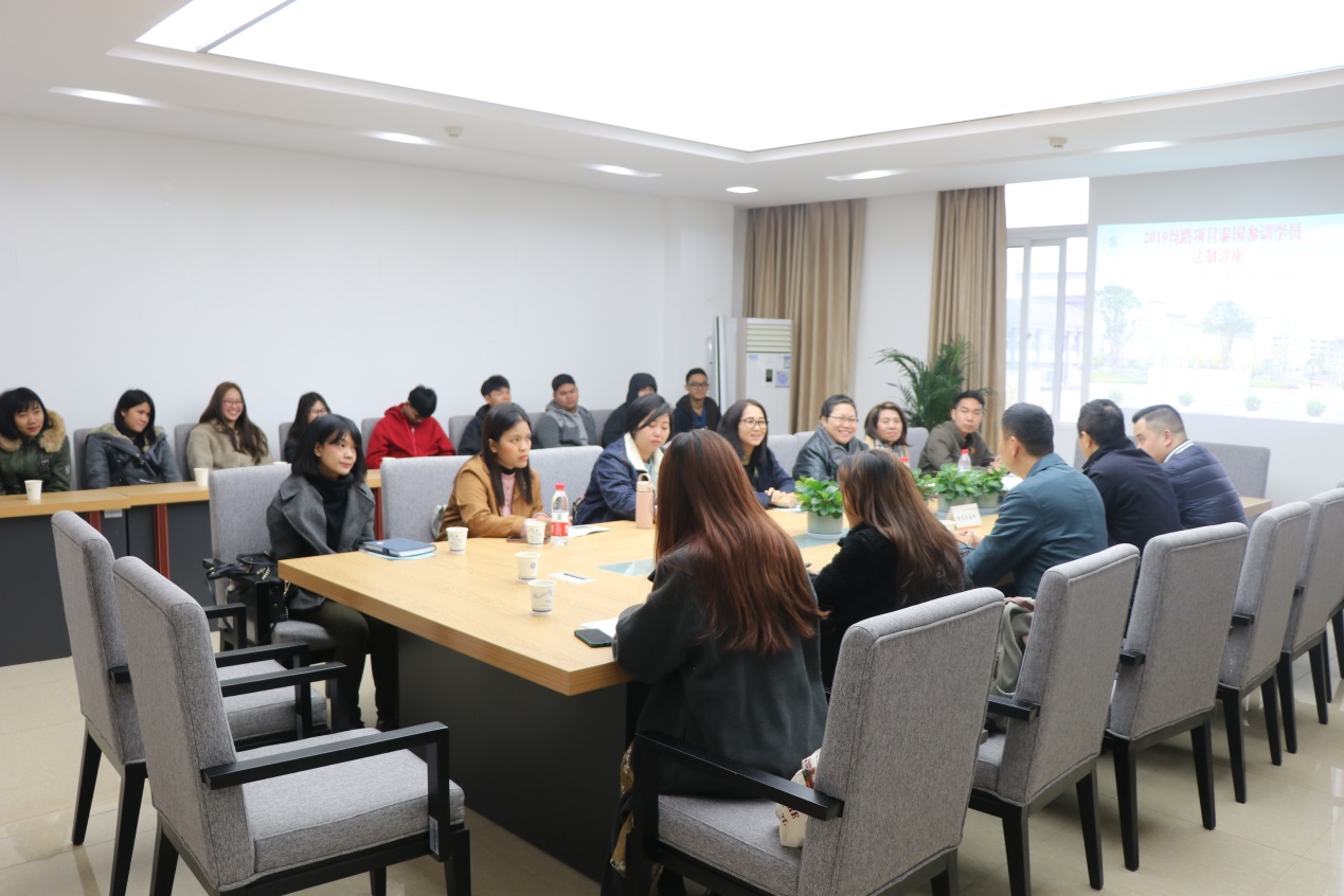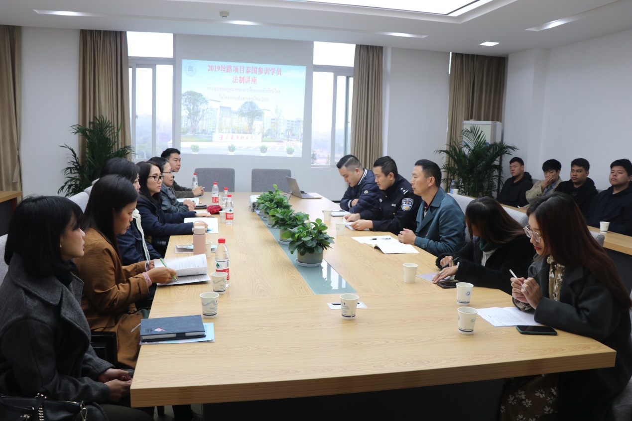 为进一步提升我校留学生安全与法制意识,11月20日上午,我校邀请沙坪坝区丰文社区警官在五会议室举行了2019年市长奖学金丝路项目泰国参训学员法制安全教育讲座。学校对外合作交流办公室、保卫处等相关工作人员参加。