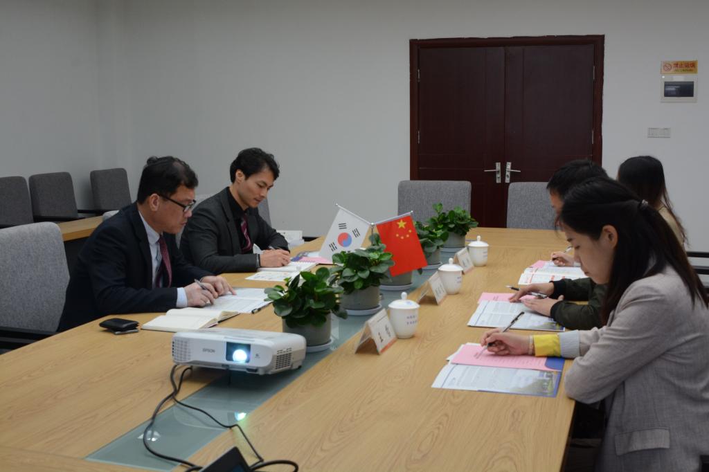 10月31日,韩国新罗大学国际处处长郑海容、经营学部教授涂波一行来访,学校党政办公室、对外合作交流办公室主任钱昭楚及相关工作人员参加了交流会。