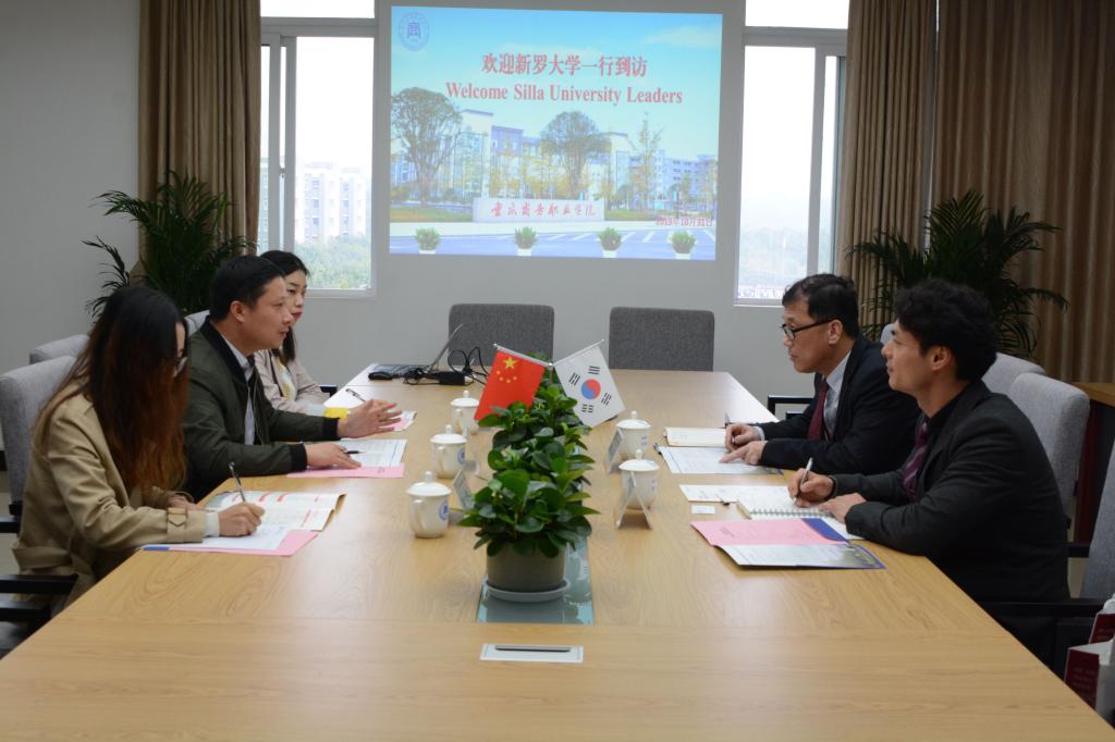 党政办公室、对外合作交流办公室主任钱昭楚代表学校对新罗大学一行表示欢迎,并对学校办学历程、招生规模、院系设置、特色专业、实训基地及国际合作情况进行介绍。