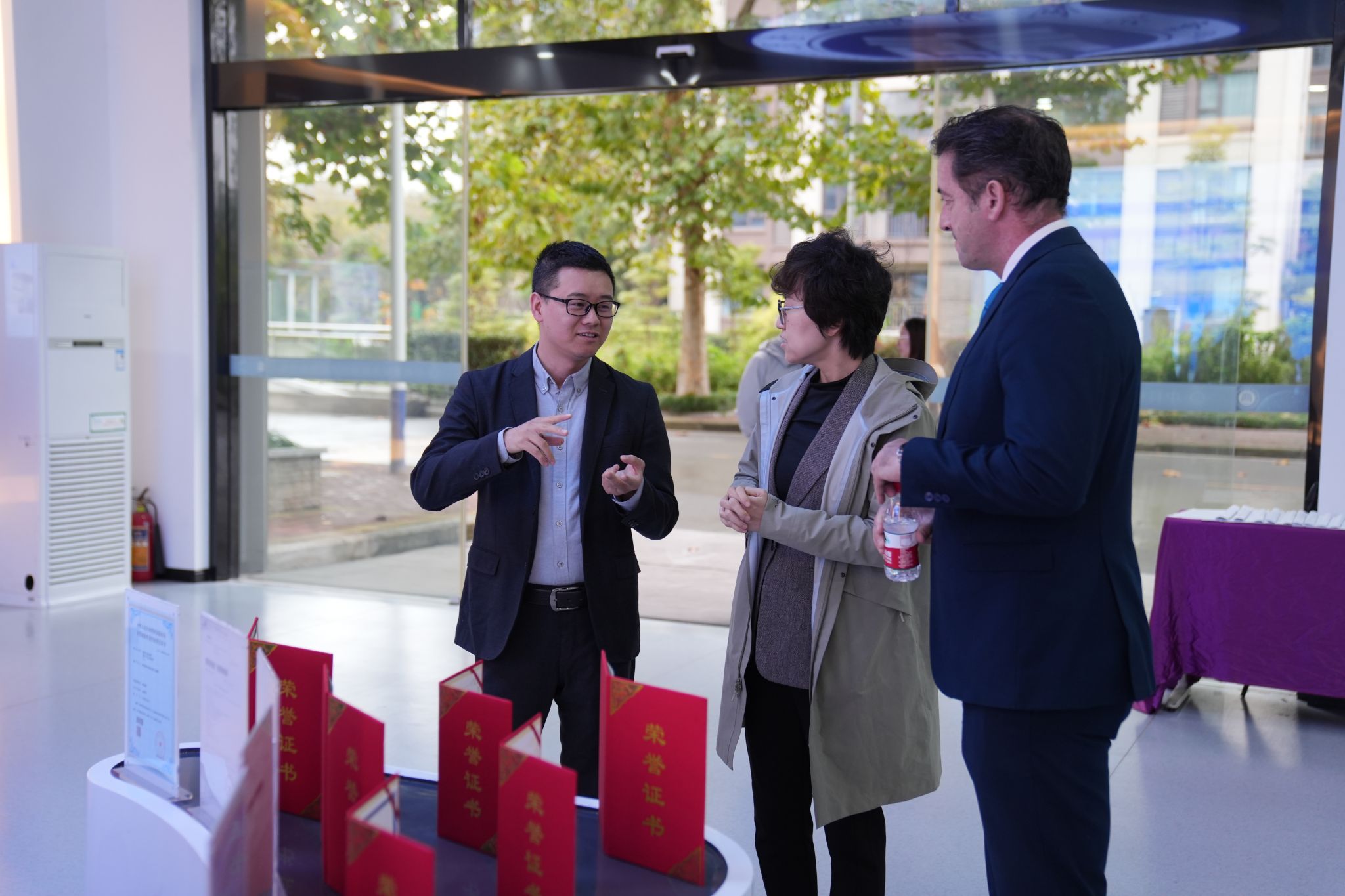 根据安排,来访嘉宾分别参观了中科重庆大数据技术应用研究院、文化旅游学院实训室、京东产业学院。