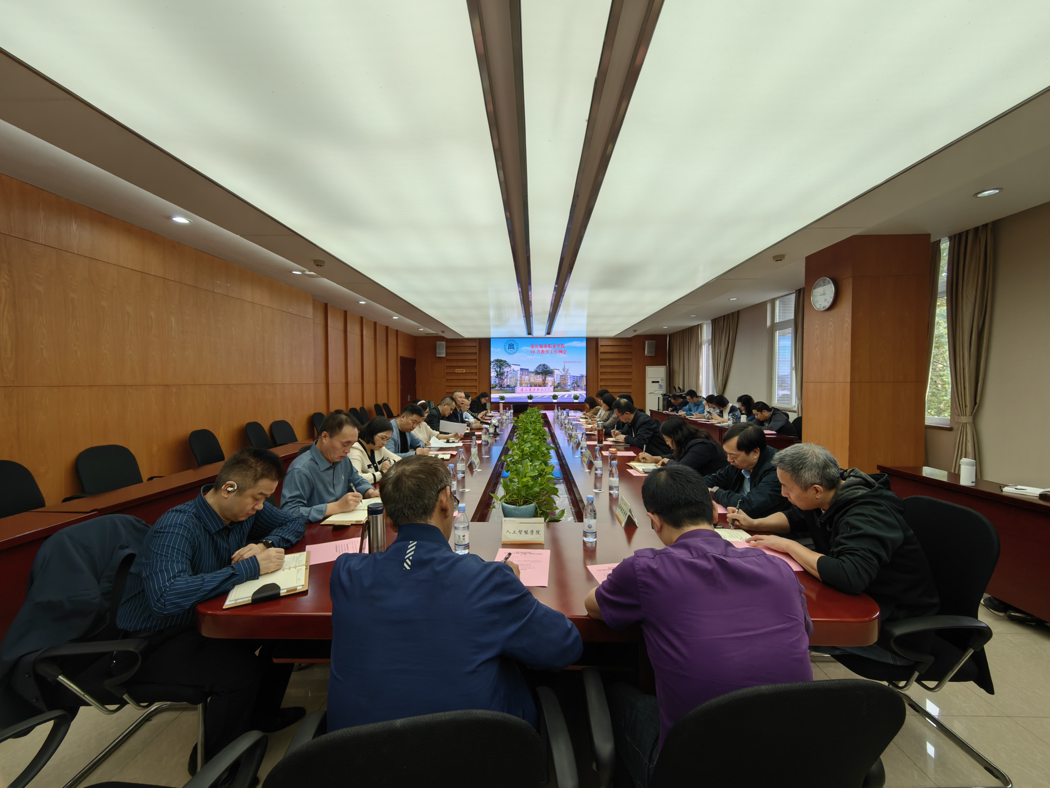 教务处负责人就网络公选课、学校第13届田径运动会、12月英语等级考试、新生“人像比对”工作、11个深化现代职业教育体系改革项目申报、2025届毕业学生岗位实习及毕业设计启动、校级第七骨干教师选拔、实训室管理及建设等教学工作进行了布置。质量管理处负责人对新一轮“双高”申报、新专业合格评估、高基报表填报等相关工作进行了布置,并对期中教学检查情况进行了通报。继续教育学院负责人对全国计算机二级考试、普通话考试、居民服务业大赛等相关工作进行了布置,推动做好“重庆火锅师傅”“巴渝大嫂”等劳务品牌的培训工作。