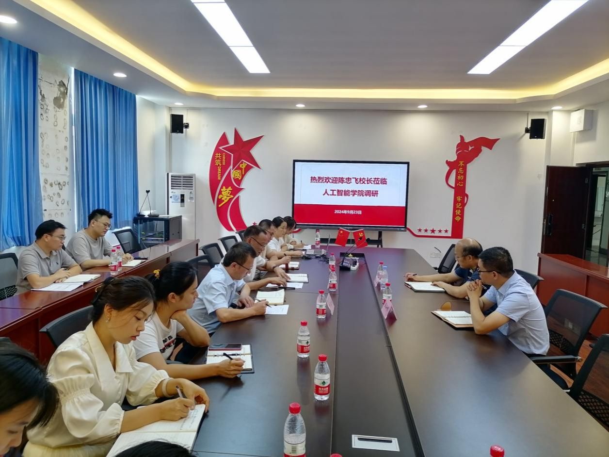 9月23日上午,陈忠飞及党政办负责人到人工智能学院开展调研。会上,人工智能学院党政负责人围绕学院的基本情况、党建工作、校企合作和内涵建设等方面进行了汇报。陈忠飞对学院近年来的亮点工作给予充分肯定,并结合自己的教育实践经验,对学院未来发展提出了建设性的意见。他特别强调,人工智能学院要进一步凝聚力量,加强教师队伍建设和师德师风培养,深入开展校企合作,着力提高人才培养质量,利用外部资源优势打造学院特色发展路径。人工智能学院负责人表示,将以此次调研为契机,持续深化改革,推动学院实现更高质量的发展。