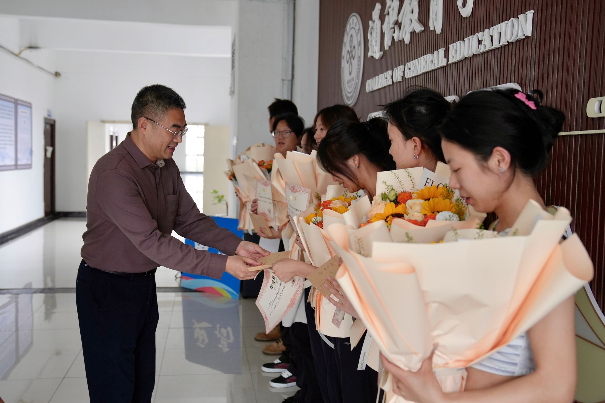 【文/通识教育学院图/党委宣传部】5月6日,学校党委书记江涛,党委副书记、校长陈忠飞亲临通识教育学院,亲切慰问在2025年重庆市大学生田径比赛中斩获佳绩的师生代表,党政办公室负责人陪同,通识教育学院师生代表参加此次慰问活动。