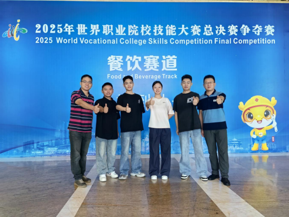本次大赛是教育部牵头组织的职业教育国际性高水平职业技能赛事。学校参赛队由指导教师冯勇、周占富,选手李函(2023级西式烹饪工艺专业)、陈浏阳(2023级烹饪工艺与营养专业)、苏木牛(2024级烹饪工艺与营养专业)、秦佳浩(2024级烹饪工艺与营养专业)四位学生组成。团队以扎实的专业技能、创新的菜品设计和默契的团队协作,从全国众多高职院校中脱颖而出,最终以小组第二名的成绩斩获“银奖”。