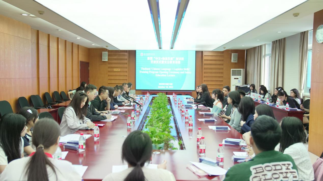 【文/对外合作交流中心 图/党委宣传部】10月16日上午,泰国“中文+物流技能”培训班开班仪式暨安全教育讲座顺利举行。本次活动迎来泰国春武里科技职业学院29名师生,中泰职业教育联盟中国办公室代表,学校党委副书记余晓玲以及对外合作交流中心、通识教育学院(国际学院)、电商物流学院相关负责人共同出席本次活动。