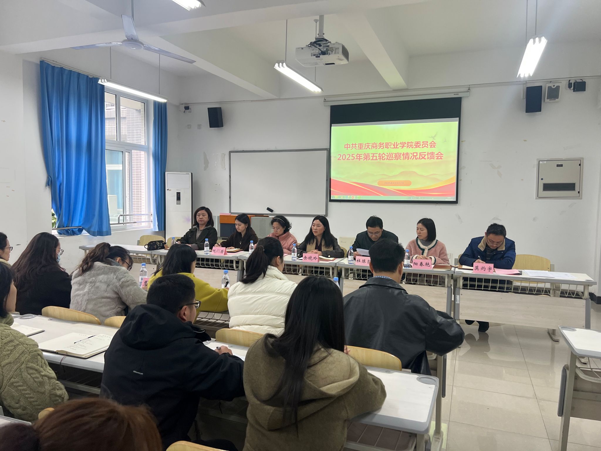 【文/图 学校党委巡察工作领导小组办公室】2025年12月17日,党委巡察组对文化旅游学院党总支进行了巡察情况反馈。校党委委员、党委副书记、巡察领导小组副组长余晓玲,第五轮巡察组成员及文化旅游学院全体教职工参加会议,文化旅游学院党总支书记莫灼宇主持会议。