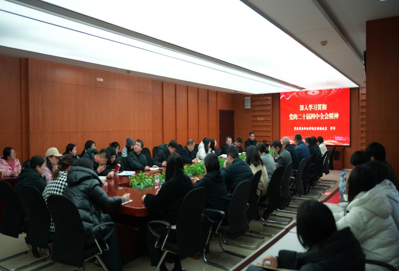 【文/图 科研处】12月22日下午,学校在办公楼三会议室举行学习贯彻党的二十届四中全会精神宣讲报告会。学校宣讲团成员,党委委员、副校长管军作宣讲报告。财务处、科研处(发展规划处)、资产管理处、信息技术中心,以及数字传媒学院、人工智能学院教职工及学生代表共计60余人参会学习。