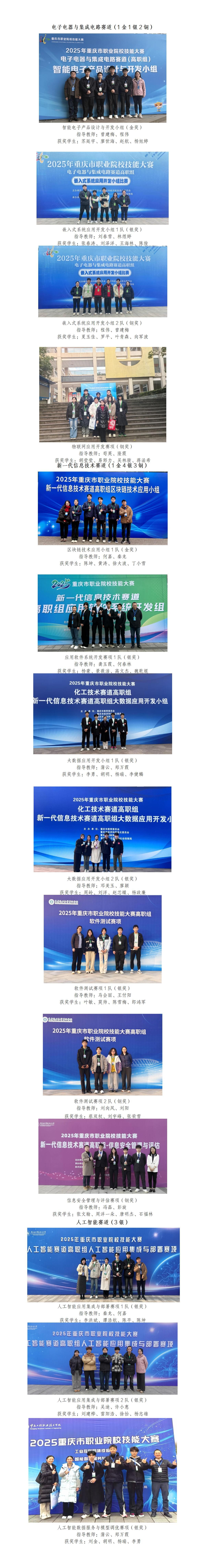 【文/图 人工智能学院】在2025年重庆市职业院校技能大赛中,学校人工智能学院师生凭借扎实的专业技能和顽强的拼搏精神,在新一代信息技术、人工智能、电子电器与集成电路三大赛道多点突破,累计荣获金奖2项、银奖8项、铜奖5项,以亮眼战绩彰显了学校“以赛促教、以赛促学、以赛促技”的育人成效。