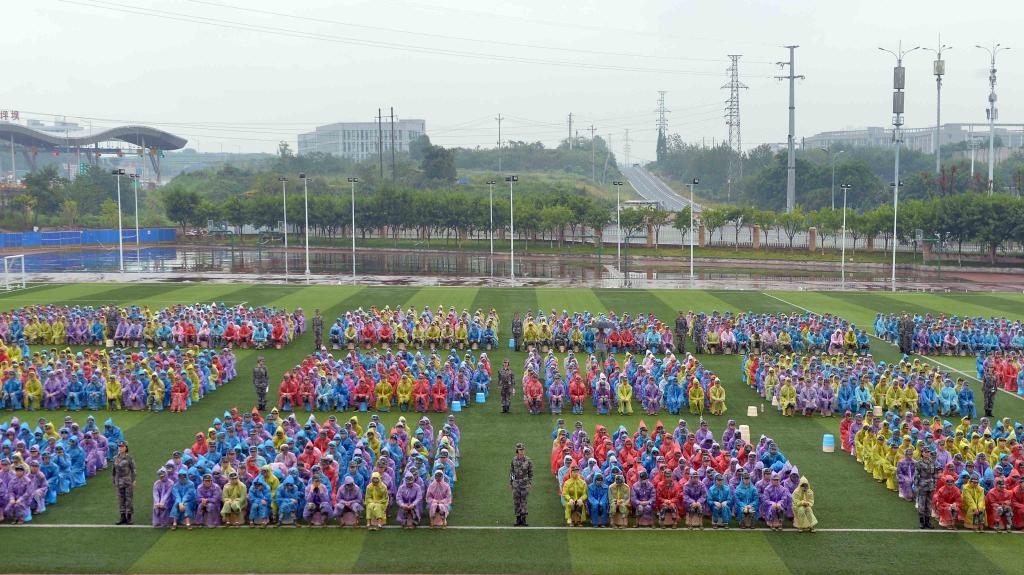 仪式在庄重的升旗仪式中拉开帷幕,杨守康宣布了军训团编成命令。周斌上校介绍了军训的重要意义,认为学生不仅要有丰富的文化知识,还要具备良好的身体素质和必要的国防知识。他希望,新生们在军训中,要发扬不怕苦、不怕累、顽强拼搏的精神,要克服困难完成军训任务。新生代表周子荐、教官代表孙梓冉、教师代表于明伟分别发言。