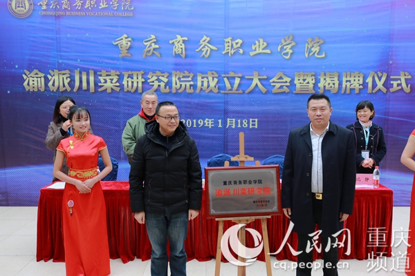 人民网重庆1月18日电 今(18)日下午,重庆商务职业学院渝派川菜研究院成立大会暨揭牌仪式,在该校餐饮实训楼举行;重庆商务职业学院副院长丁谦、重庆市烹饪协会会长王顺海,共同为渝派川菜研究院揭牌。渝派川菜研究院成立后,将立足于服务重庆地方经济、推动渝派川菜产业持续化发展,激发教师、技术人员的科学研究热情。