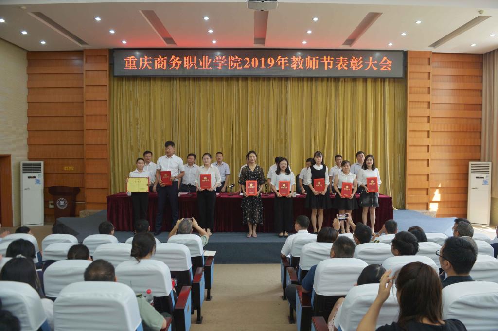 纪委书记杨守康宣读了市商务委党组书记、主任张智奎致全体教职员工的教师节慰问信,副院长张荣宣读了优秀教师、优秀教育工作者的表彰决定,副院长舒鸿宣读了优秀辅导员的表彰决定。学校领导分别向优秀教师、优秀教育工作者、优秀辅导员代表颁奖。