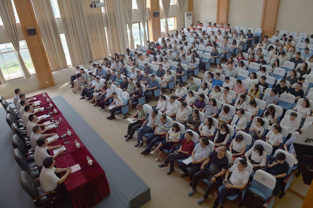 谭勇结合巡视整改和“不忘初心、牢记使命”主题教育,对全校广大教职工提三点希望:要以德立身,弘扬高尚师德。希望广大教职员工切实把教书育人和自我修养结合起来,做到以德立身、以德立学、以德施教,坚决做到以习近平新时代中国特色社会主义思想为统领,牢固树立“四个意识”,坚定“四个自信”,做到“两个维护”,将立德树人、言传身教贯穿到教书育人全过程,培养德智体美劳全面发展的社会主义建设者和接班人。要严谨笃学,增强各项本领。在新时代高等职业教育的发展机遇期,对高职院校教师提出了新的更高要求,希望广大教师要不断提高自身专业素养,及时掌握了解专业领域发展前沿的知识技能,不断增强教书育人本领,争做有情怀有担当的新时代人民教师。要勤勉奉献,撸起袖子加油干。希望全校上下敢于直面问题,发扬斗争精神,齐心协力,放下包袱、轻装上阵,积极投身巡视整改,结合“不忘初心、牢记使命”主题教育,认真落实全国和全市教育大会精神,聚焦应用型商务类高校办学目标,以优质高职院校建设为抓手,立足本职岗位,撸起袖子加油干,共同推进教学改革,提高办学质量,推动学校各项事业再上新台阶。