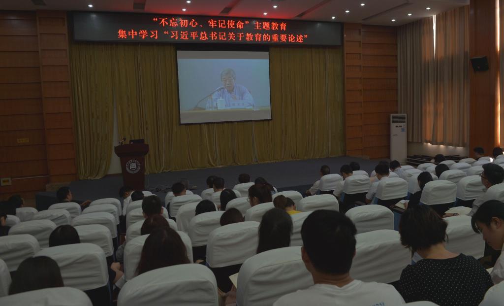 会议组织学习了教育部党组书记、部长陈宝生所作的“习近平总书记关于教育的重要论述”导学,集中学习了教育部课题组编印的《深入学习习近平关于教育的重要论述》。会议要求,要以习近平总书记关于教育的重要论述为指引,坚持党对学校的全面领导,坚持社会主义办学方向,坚持立德树人的根本任务。要认真学习领会陈宝生部长的导学要求,结合学校“不忘初心,牢记使命”主题教育实际,做到知行合一、学以致用,切实把学习成效转化为加强党性修养的生动实践,转化为做好本职工作、推动事业发展的生动实践。