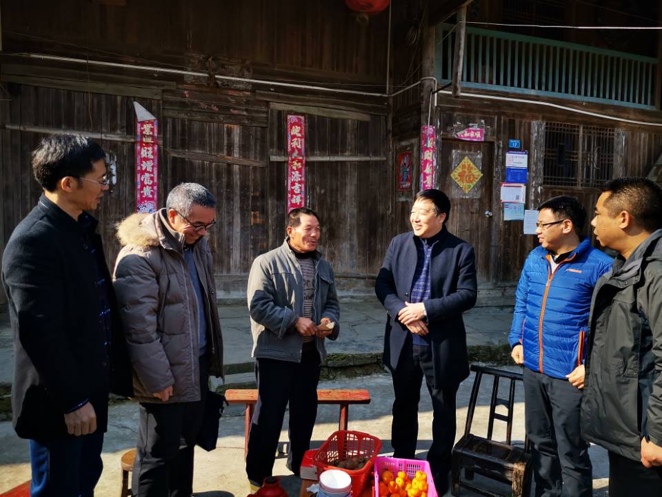 冉光学一行深入隘口镇富裕村调研考察定点扶贫工作,实地查看了富裕村生态旅游、民宿建设情况;在大龙门组走访慰问了两户建卡贫困家庭,了解了他们的家庭状况与脱贫情况,鼓励他们坚定信心,科学谋划,特色发展,早日脱贫;在岑龙小学调研了学校的房屋建设、厨房用品以及相关配套设施,商谈捐助炊餐用具、洗衣机等物资;在隘口镇电商扶贫产业园调研中,市商务委驻镇干部李伟对产业园建设情况作了介绍,结合学校专业优势与实际情况,双方就下一步帮扶项目进行了深入探讨。