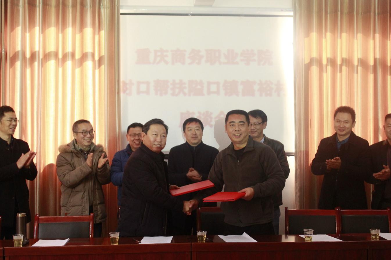 在富裕村便民服务中心召开的座谈会上,村负责人就富裕村基本情况、接受帮扶情况与脱贫攻坚工作开展计划等作了介绍。学校与隘口镇签署了对口帮扶协议,确定了下一步扶贫帮扶工作方向。