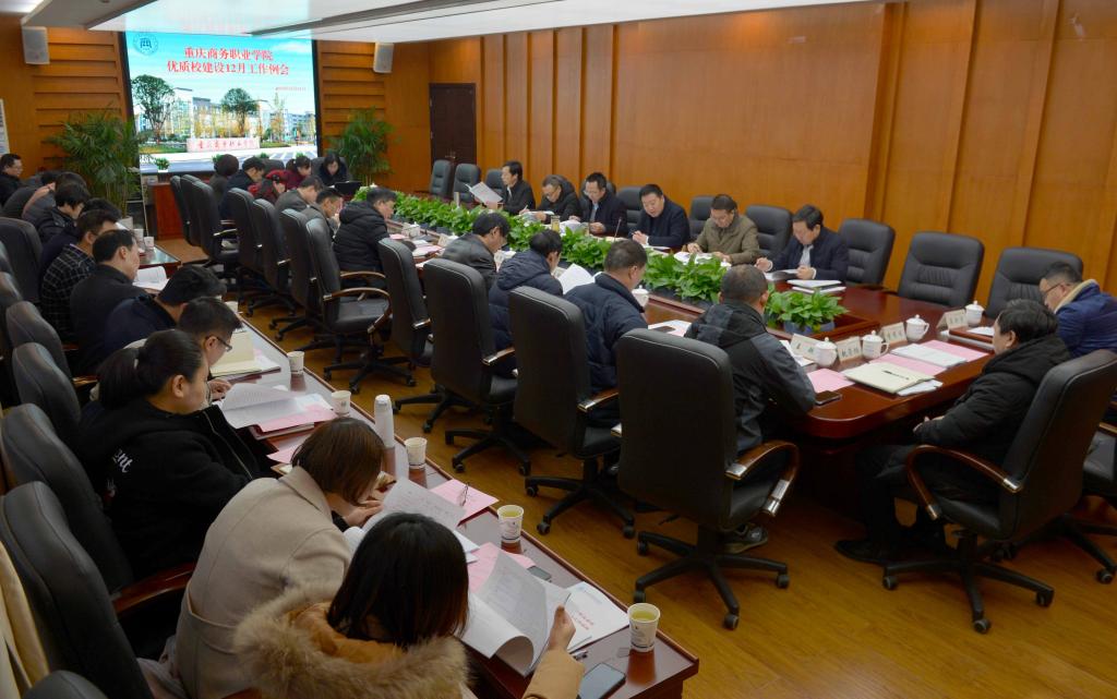 【文/图   优质办】12月31日,学校在第六会议室召开12月优质校建设工作例会。党委书记谭勇,院长冉光学,副院长丁谦,纪委书记杨守康,副院长张荣、舒鸿及各建设项目组、相关部门负责人、优质校建设办公室全体人员参加会议。冉光学主持会议。