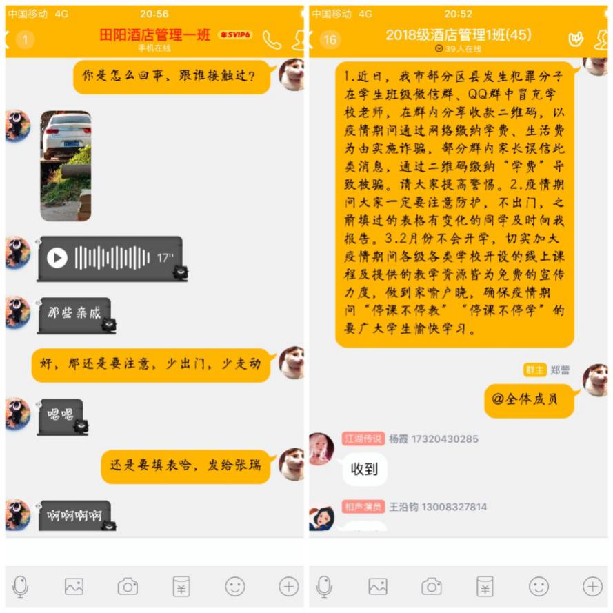 进一步统筹餐饮旅游学院微信公众号、学生工作群、班级群等线上渠道,广泛宣传疫情防控知识、防控态势、政策措施等,有力消除学生恐慌情绪,引导学生理性抗“疫”、科学防护;发布学校关于信息排查、延期开学、线上教学的信息,及时回应学生关切的问题,推介奋战在抗“疫”一线的先进工作者典型事迹,开展爱国主义教育与感恩励志教育;辅导员围绕科学防控、线上教学、爱国教育等主题召开线上班会,做好特殊时期宣传教育与学生管理工作。