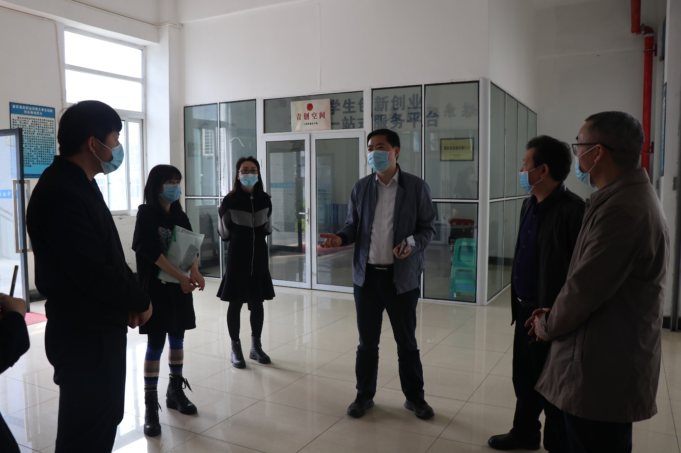 【文/图 校疫情防控工作领导小组办公室】3月23日上午,沙区卫健委副主任余显军、应急办主任崔勇维一行5人到校检查疫情防控工作。副院长舒鸿、学校疫情防控工作领导小组部分成员陪同检查。