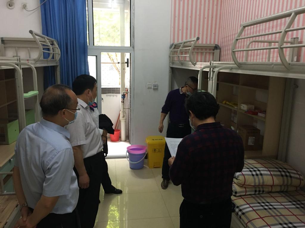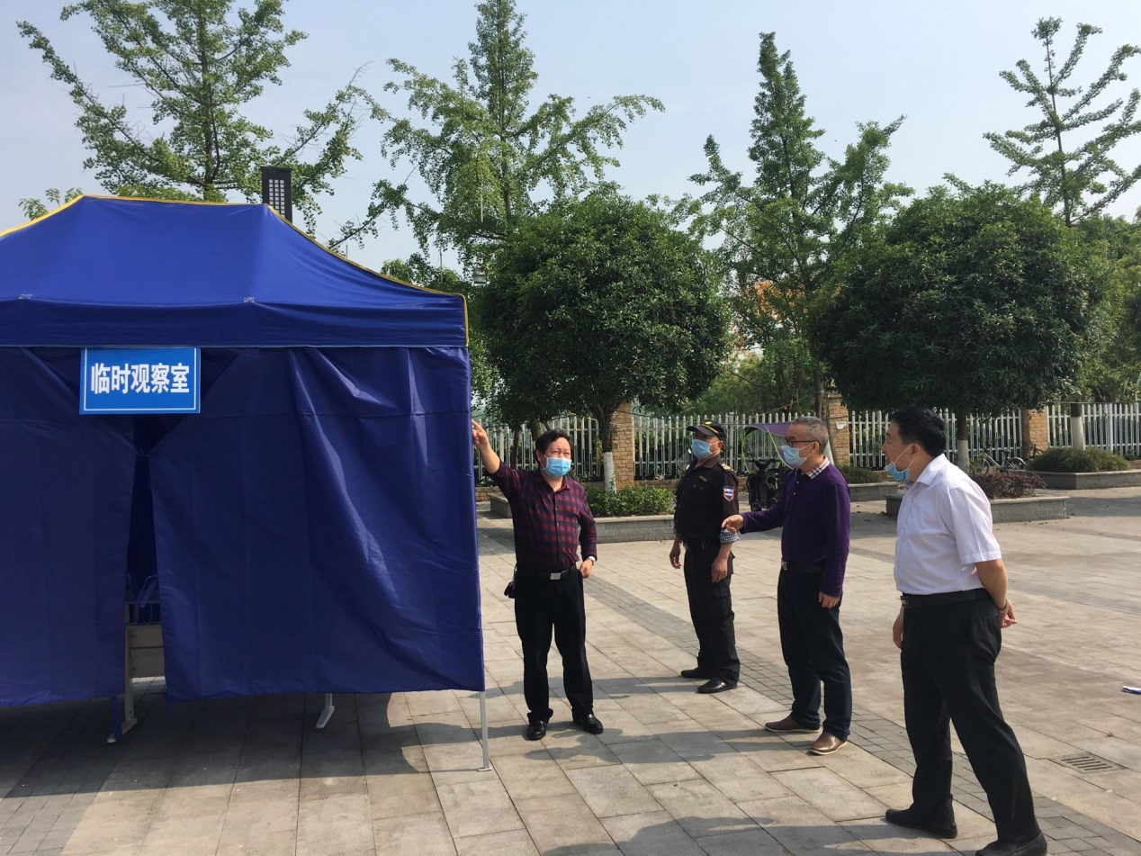 【文/图 校疫情防控工作领导小组办公室】5月1日,院长冉光学、副院长舒鸿带领校疫情防控工作领导小组办公室和物业有关人员对学校东校门临时观察室、红外线测温仪、健康管理隔离室、学生食堂及校园周边环境等疫情防控工作环节进行了检查,并对存在问题提出了改进意见。