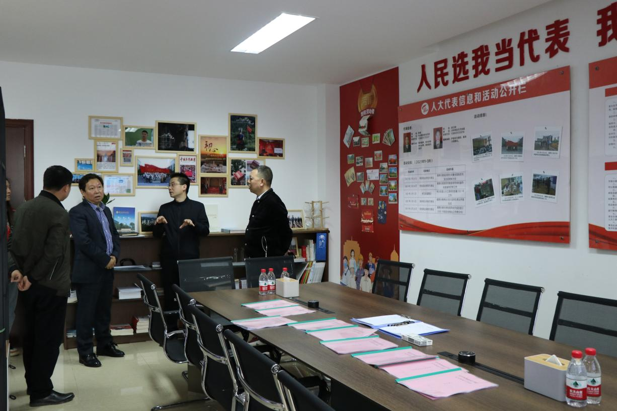 【文/党政办公室 图/新闻中心】4月9日上午,沙区人大常委会人代工委副主任秦永生、丰文街道人大工委主任彭立彬一行到校检查人大代表工作站运行维护情况。