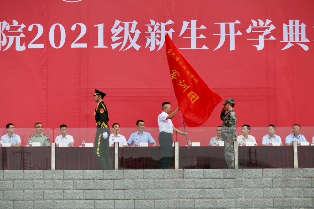 【文/图 学生工作部】9月17日,学校2021级新生开学典礼暨军训开营仪式在运动场举行。在家校领导、沙坪坝区武装部冯江鸿团长、相关部门及各二级学院党政负责人参加典礼。