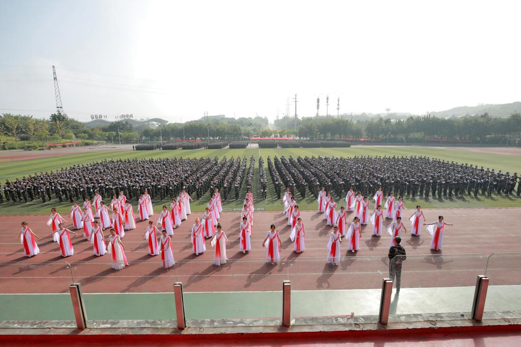 【文/图 学生工作部】9月29日上午,学校2021级学生军训结训仪式在运动场举行。重庆市沙坪坝区武装部领导、学校在家校领导、相关部门负责人和二级学院党政负责人、2021级全体学生共计4900余人参加仪式。