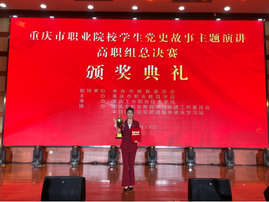 【文/图 文化旅游学院】6月28日,学校文化旅游学院选手谢程栏参加由重庆市教育委员会指导、重庆市职业教育学会主办、重庆工业职业技术学院承办的“重庆市职业院校学生党史故事主题演讲高职组总决赛”并荣获‘一等奖’。