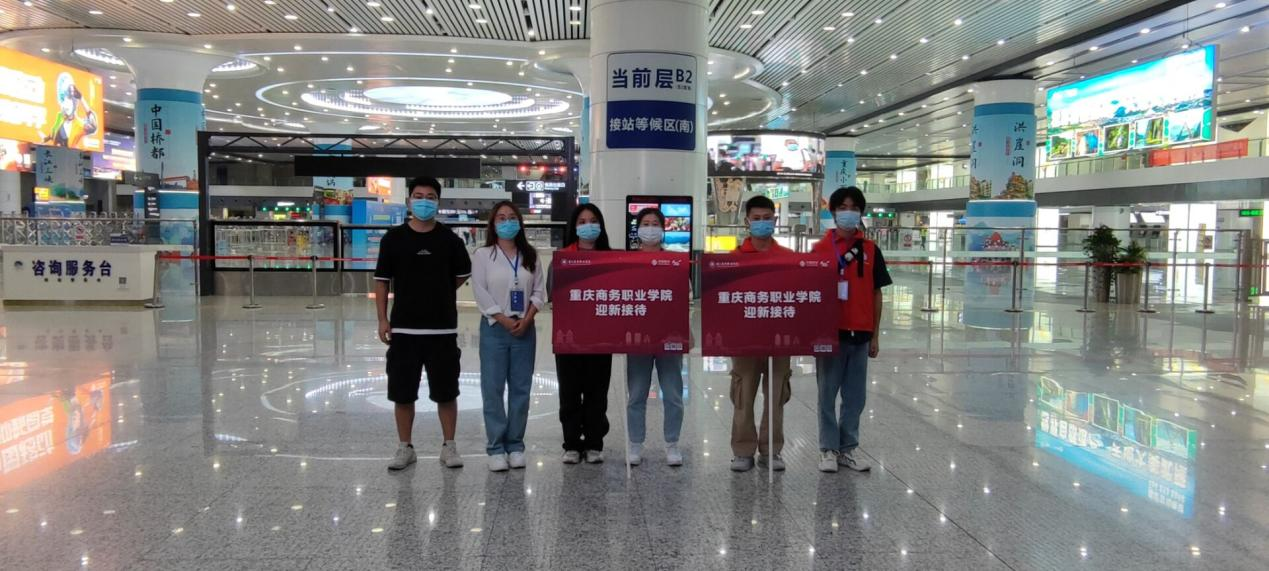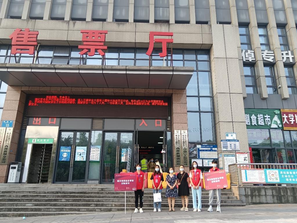 志愿者师生在火车站、机场接站