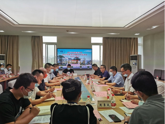 【文/图 后勤处】为切实做好2022年秋季学期开学后勤服务保障工作,9月8日下午,学校在行政楼第五会议室召开服务外包单位2022年秋季开学工作推进会。党委副书记、院长江涛出席会议,后勤处部门负责人及所管理的学校服务外包单位负责人参加会议,副院长丁谦主持会议。