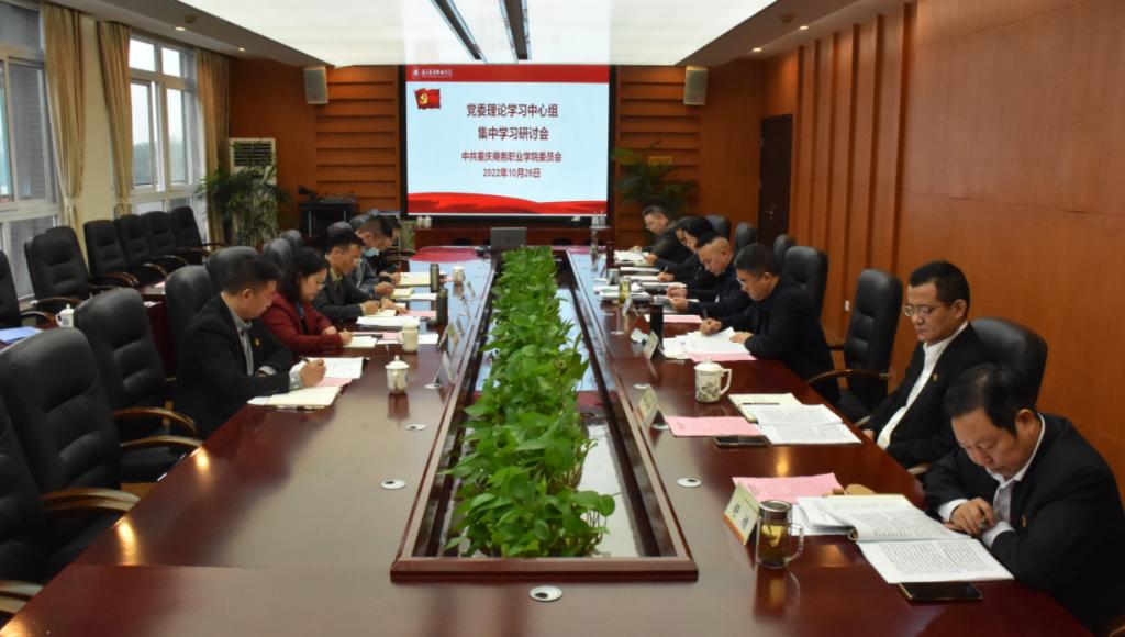【文/图 党委宣传部】10月26日,学校党委召开理论中心组学习会议,专题学习党的二十大精神,传达重庆市领导干部大会精神、市商务委党组理论学习中心组(扩大)第8次专题学习会精神,对全校学习宣传贯彻党的二十大精神进行部署。党委委员、党务部门负责人参加专题学习会。会议由校党委书记谭勇主持。