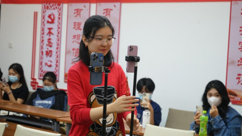 11月,财经管理学院启动了“学习二十大培育好学风”学风建设月系列活动,学习党的二十大精神主题演讲比赛、学习党的二十大精神之青春放歌等活动由线下搬到了线上,辅导员主播与千余名学生齐聚线上,聆听6名决赛选手的精彩演讲,一起见证请党放心、强国有我的青春誓言,200余名学生参与线上连麦,用歌声表达爱、传递爱、分享爱,精彩纷呈的课余文化活动,进一步营造了向学向上的校园氛围。薛瑾说:“只要学生喜欢,对学生有益,我都希望自己能够力所能及地多做一些,在这个过程中,自己也学习到了很多,内心是十分充实而又幸福的。”