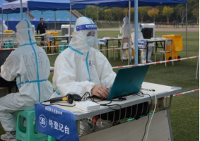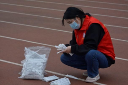 11月1日—18日志愿者参与核酸检测工作达939人次。他们分为成列组、入口组、操场秩序组、出口组、拦截组几个组,在双创街分为拦截组等小组,共同发挥作用维持核酸检测现场秩序。